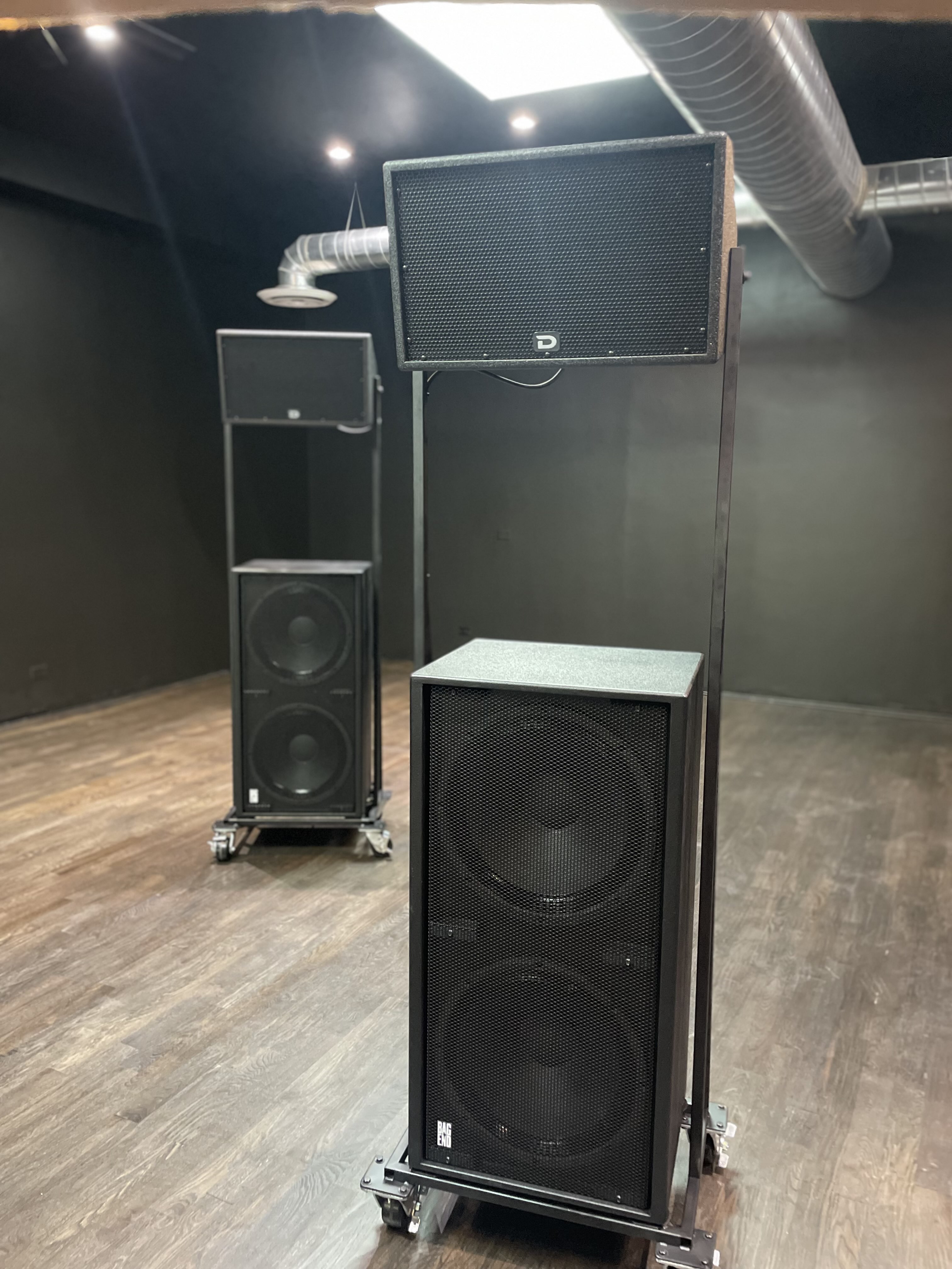 The Capacitor is a new art gallery and performance space in Chicago’s Edgewater neighborhood. The space required excellent sound quality in a flexible, movable system to support a wide range of event layouts. Midnight Audio designed and installed a modular solution using Danley SH95 loudspeakers, Bag End D18E-I subwoofers, and a custom welded rolling frame, allowing the system to adapt easily while maintaining strong sonic performance and a clean visual presence. Midnight Audio also designed and installed acoustic wall treatments, significantly improving the room’s overall sound quality.